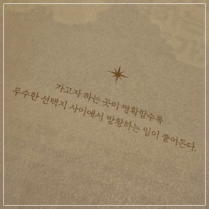 그러한 삶을 살아가고 있길 바라는 마음이 담겨있고, 그러기 위해서 지금의 제가 해야 할 것을 하는 지표가 되더군요.