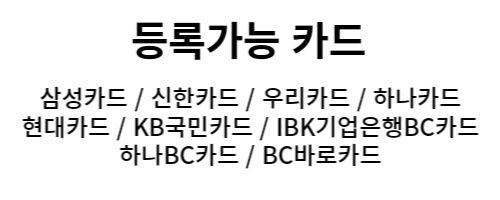 - 등록가능 카드와 불가능한 카드목록은 아래 사진 확인하세요
