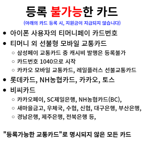 - 등록가능 카드와 불가능한 카드목록은 아래 사진 확인하세요