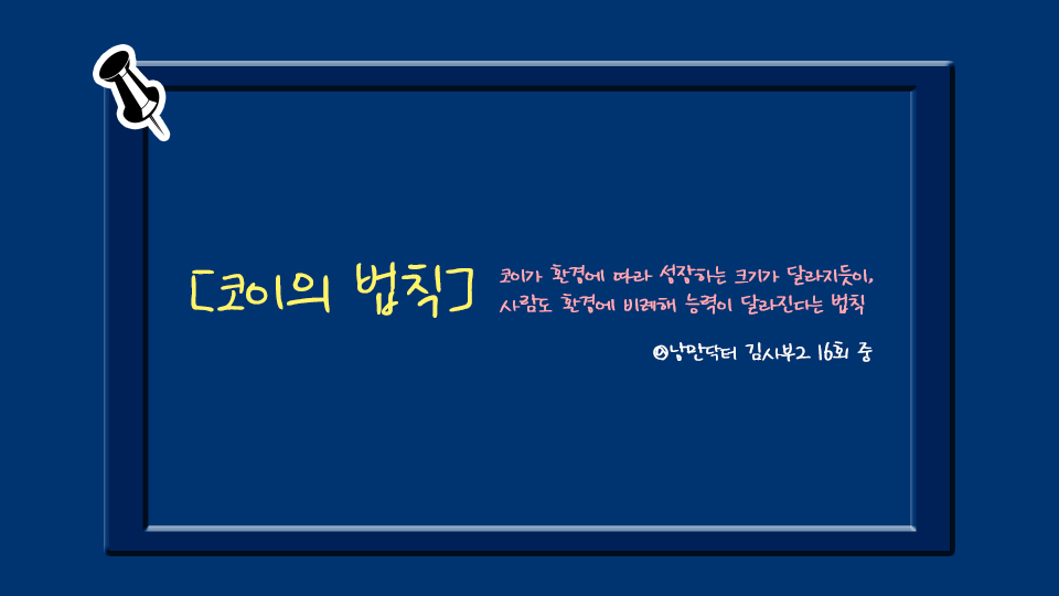 코이의 법칙처럼, 사람도 환경에 따라 비례해 능력이 달라지는 것을